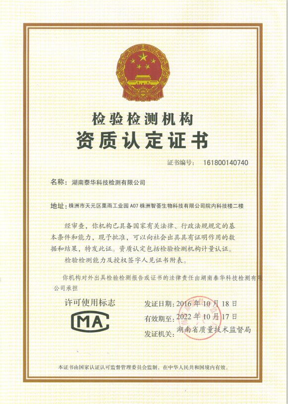 我公司(湖南泰華科技檢測有限公司)成立于2014年3月,有員工29人,檢測技術人員14人,其中高級技師6人,高級工程師4人。公司占地面積1260m2,擁有儀器設備98臺套,計量認證檢驗能力376項480個因子,且通過了省環保廳的能力認定。14人取得了省環保廳組織的環境檢驗檢測持證上崗合格證書,15人取得了省《建設項目職業病危害評價和職業病危害因素檢測上崗證書》。公司與湖南工大簽訂了產學研合作協議,建有市級中小微企業環境檢驗檢測服務平臺,成立了檢驗檢測工程技術研究中心。